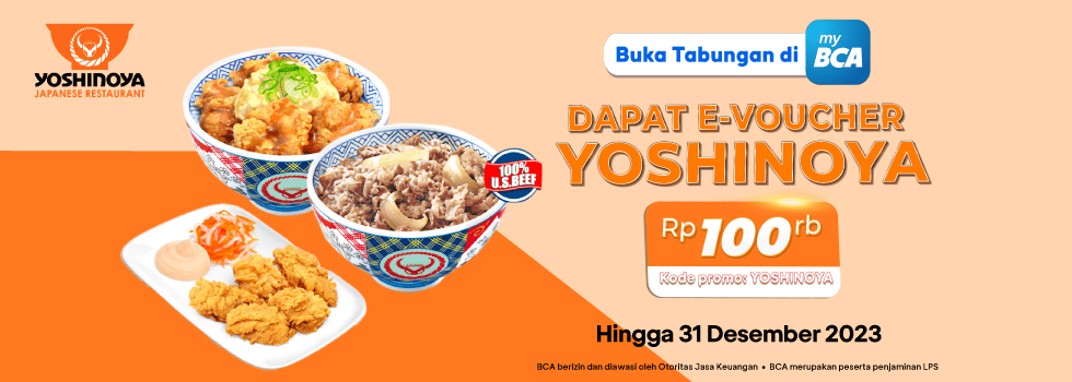 | 1 | Pilih Kode Promo “YOSHINOYA” pada saat Buka Tabungan di BCA mobile atau myBCA |