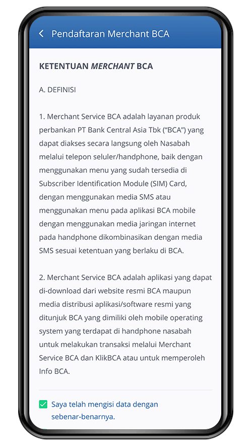 Klik Daftar pada Aplikasi Merchant BCA, pilih opsi EDC dan pilih Bentuk Usaha
