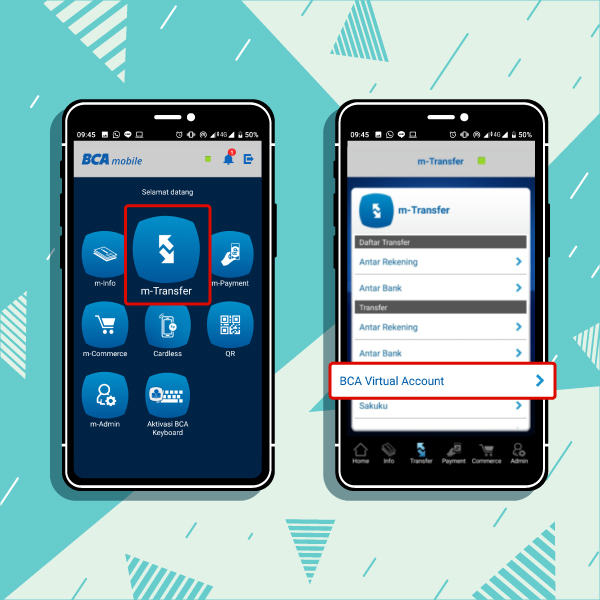 - Klik Fitur “m-Transfer” dan pilih “BCA Virtual Account”