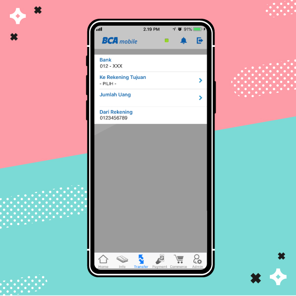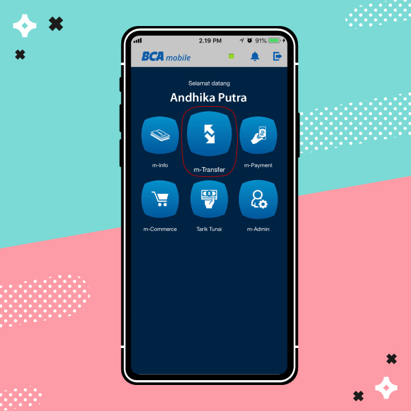 - Masuk ke aplikasi BCA mobile, pilih fitur transfer