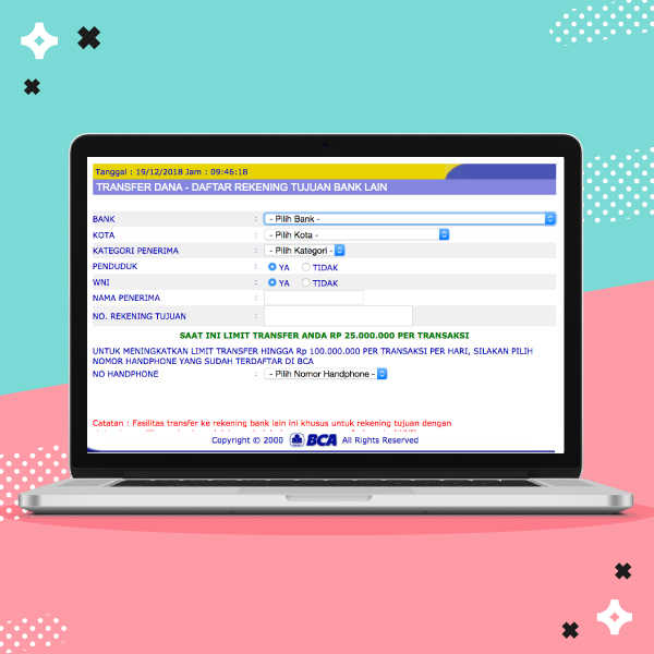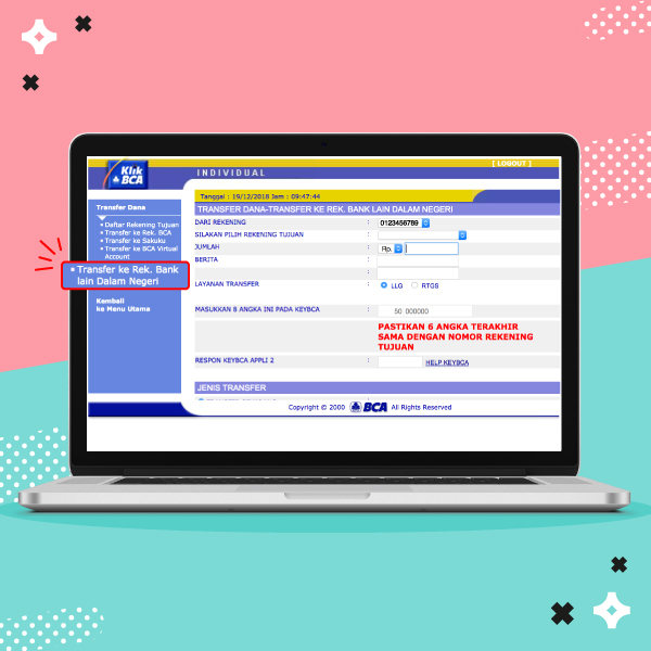 Apa sih artinya LLG dan RTGS itu? LLG adalah kependekan dari Lalu Lintas Giro, yang menggunakan fasilitas kliring untuk transfer antara satu bank dengan lainnya. Sedangkan, RTGS adalah singkatan dari Real Time Gross Settlement, yang menggunakan real time untuk transfer antara bank supaya mempercepat transferan kamu ke rekening penerima. LLG dan RTGS juga dapat dilakukan melalui kantor cabang BCA dan Klik BCA. Keren kan?