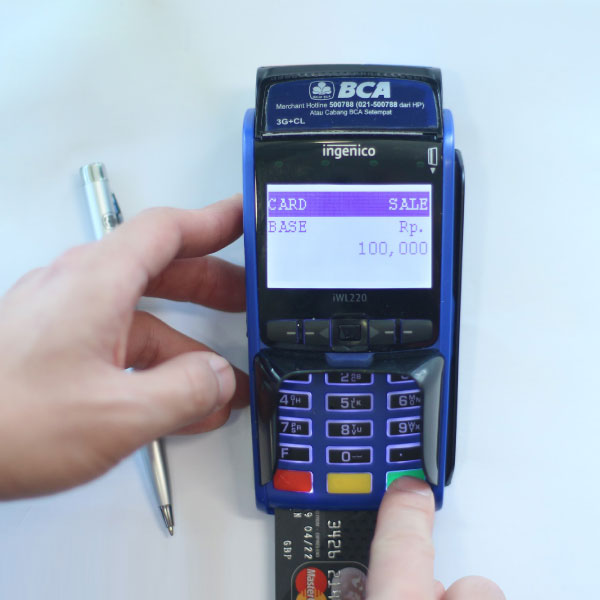 - Berikan kartu kredit dan minta pemegang kartu untuk menandatangani sales receipt (jika menggunakan PIN tidak perlu menandatangani lagi).