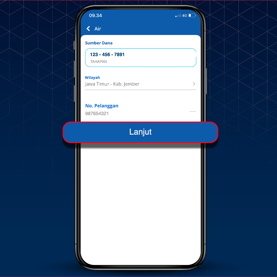 Pilih sumber dana, wilayah dan isi no Pelanggan, lalu klik