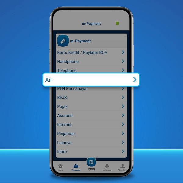 Login ke myBCA dan pilih “Air” pada fitur Bayar &