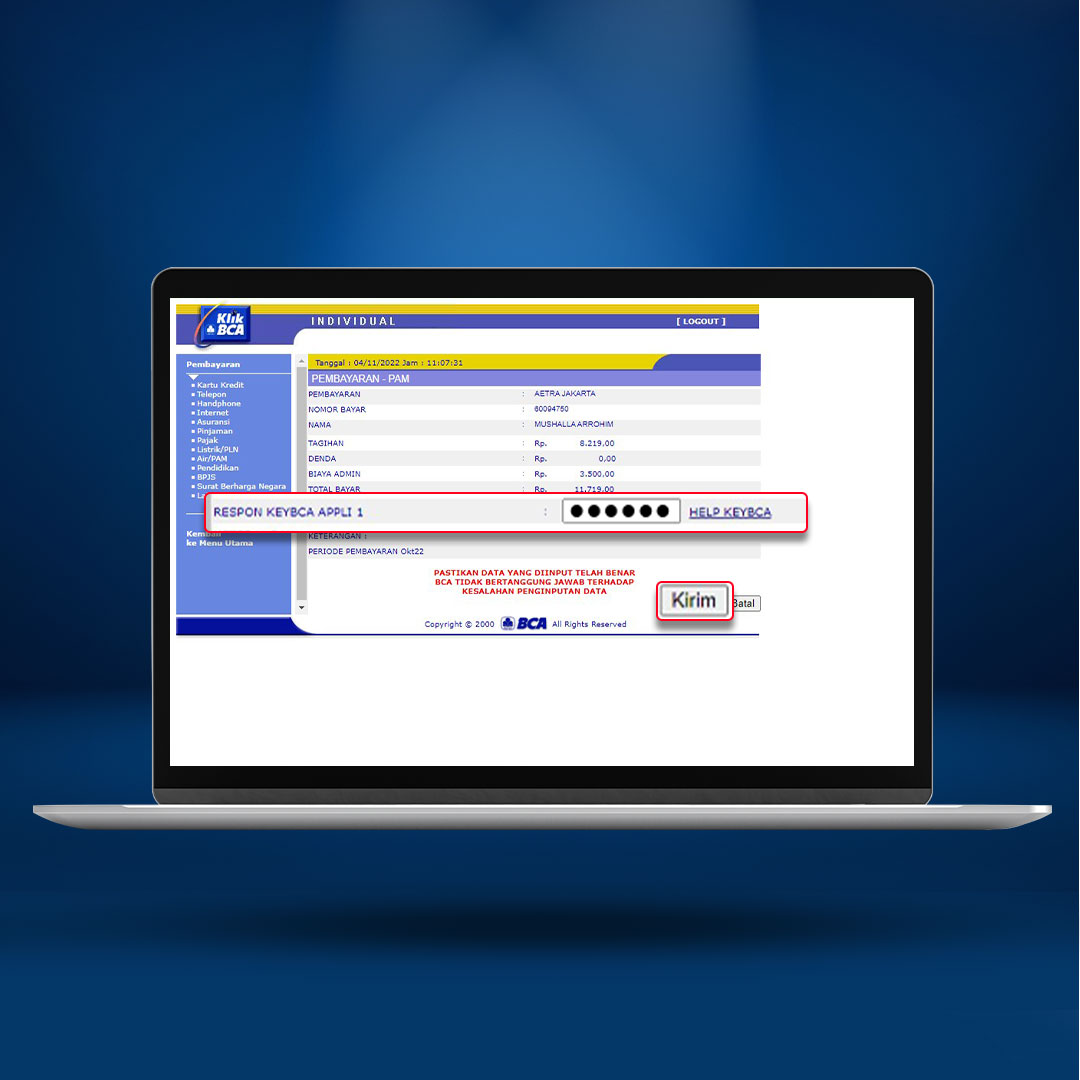 Cek detail pembayaran, masukkan Respon KeyBCA Appli 1 dan klik