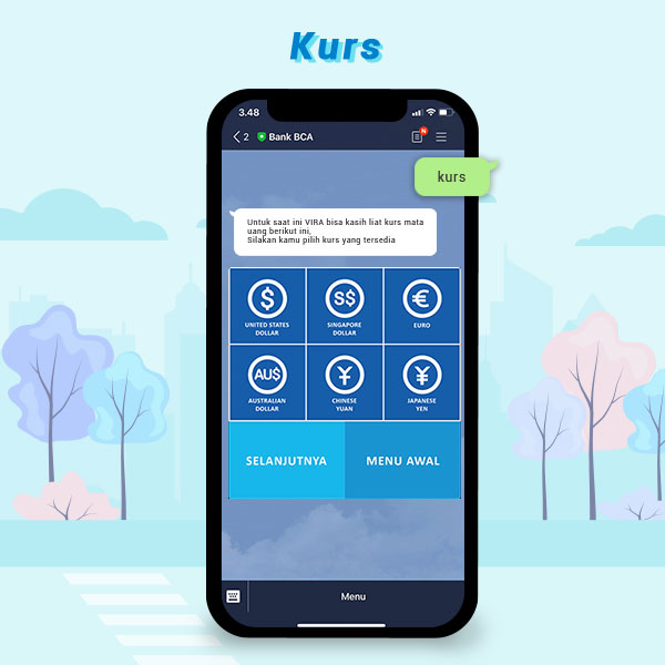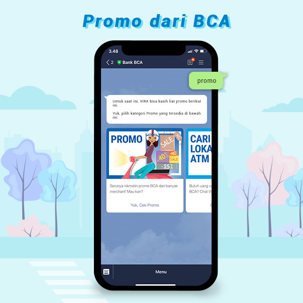 Dengan chat langsung sama VIRA kamu akan selalu terupdate dengan promo terbaru atau terkini dari BCA. Tinggal chat aja “Promo” ke VIRA! - Kurs
