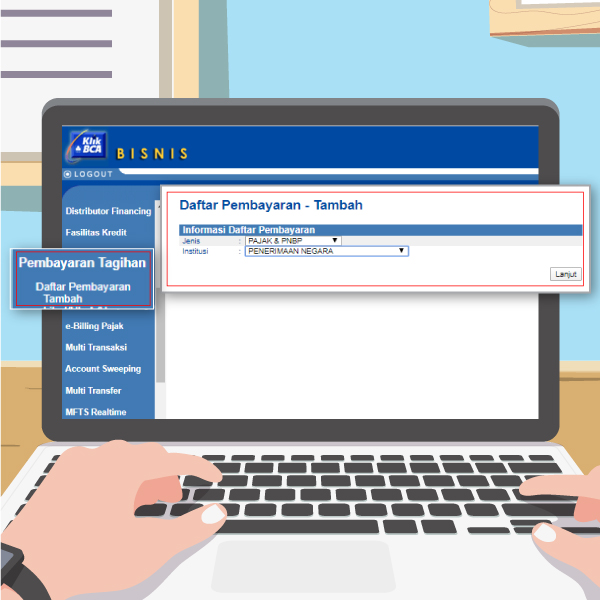 Langkah-langkah pembayaran pajak melalui KlikBCA Bisnis: