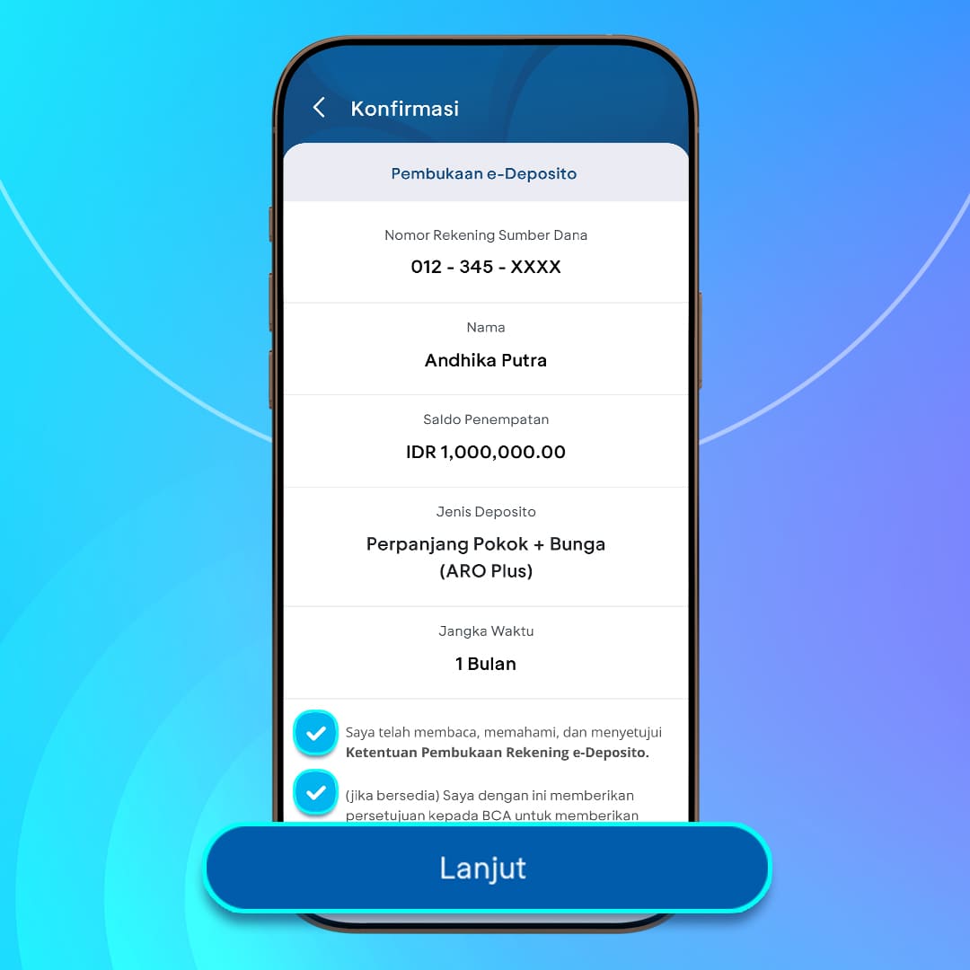 - Pahami dan centang Persetujuan info Produk e-Deposito