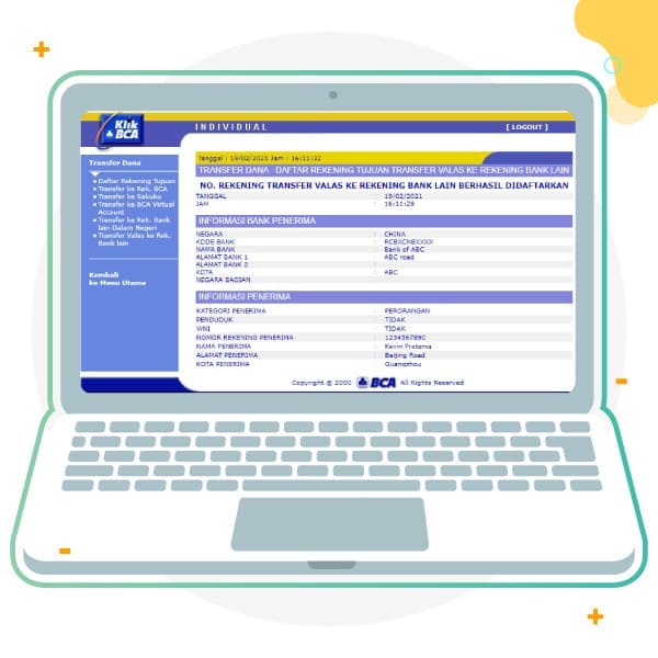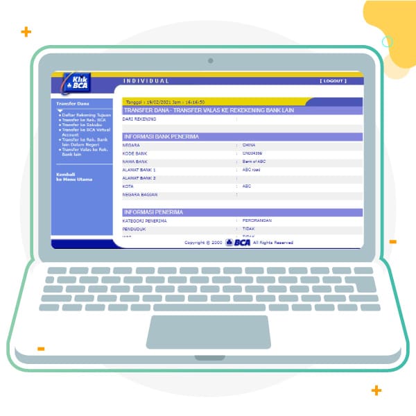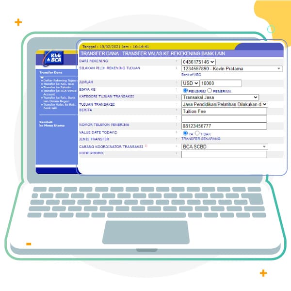 KlikBCA juga dilengkapi fitur Full Amount dan Value Today yang bikin transaksi valas berjalan real time. Artinya, mata uang akan terkonversi otomatis ke mata uang tujuan dan sampai di hari yang sama. Mantap, bukan?