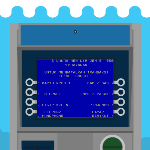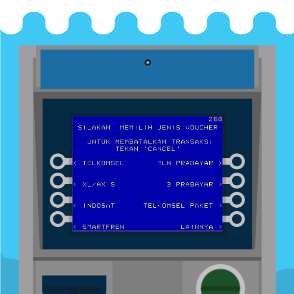 Namun, tahukah kamu bahwa ternyata fungsi ATM BCA itu tidak hanya untuk tarik dan setor tunai? Lebih dari itu, ATM BCA bisa kamu manfaatkan untuk segala keperluan transaksi juga lho. Mulai dari bayar tagihan kartu kredit, telepon, listrik, BPJS, hingga membeli berbagai voucher yang kamu butuhkan seperti di bawah ini.