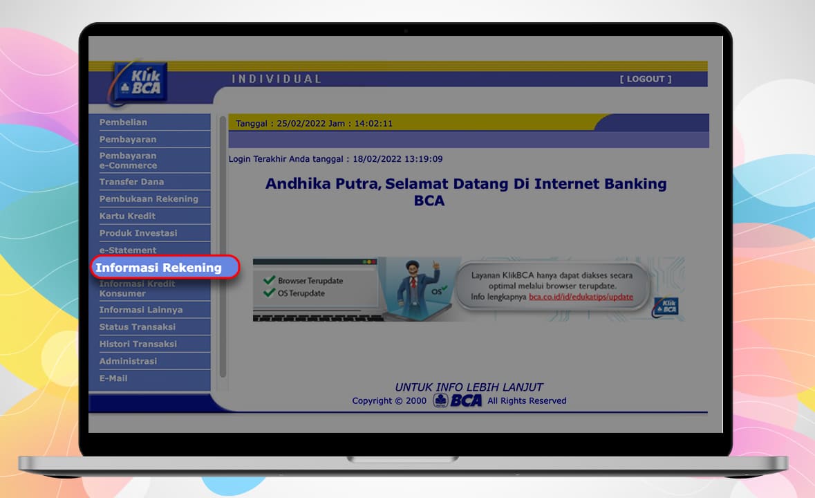 - Buka KlikBCA lalu klik “Informasi Rekening”