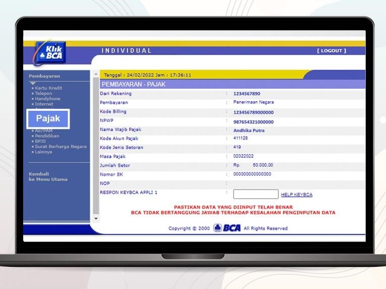 - Terakhir, masukkan respon KeyBCA untuk pembayaran.