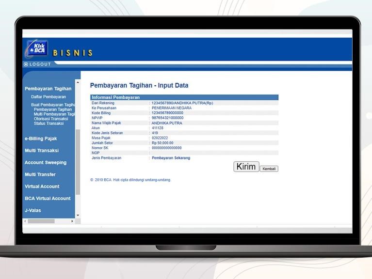- Akan muncul informasi rinci mengenai pajak yang akan dibayarkan. Klik Kirim untuk proses selanjutnya.