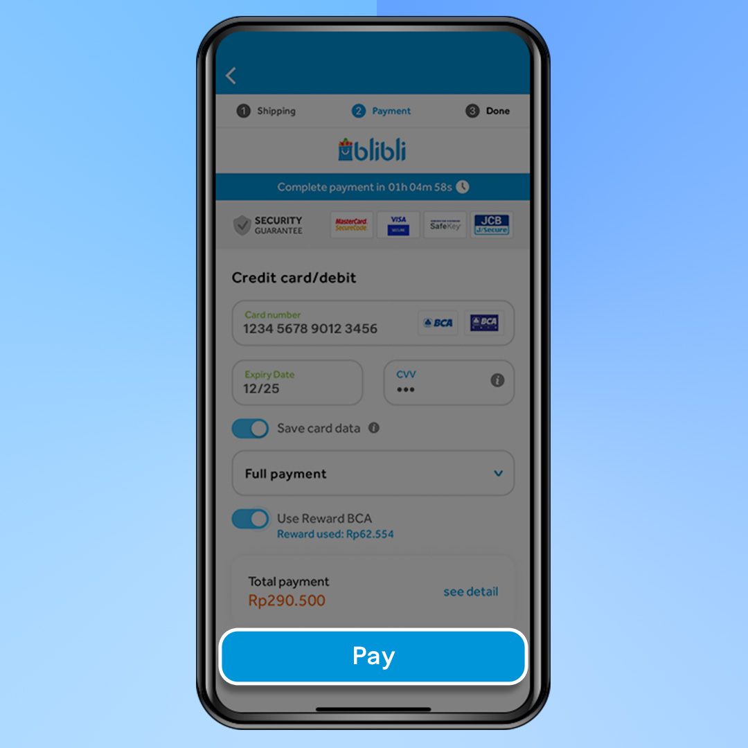 dan CVV. Pastikan untuk memilih opsi ‘Bayar Penuh’ untuk