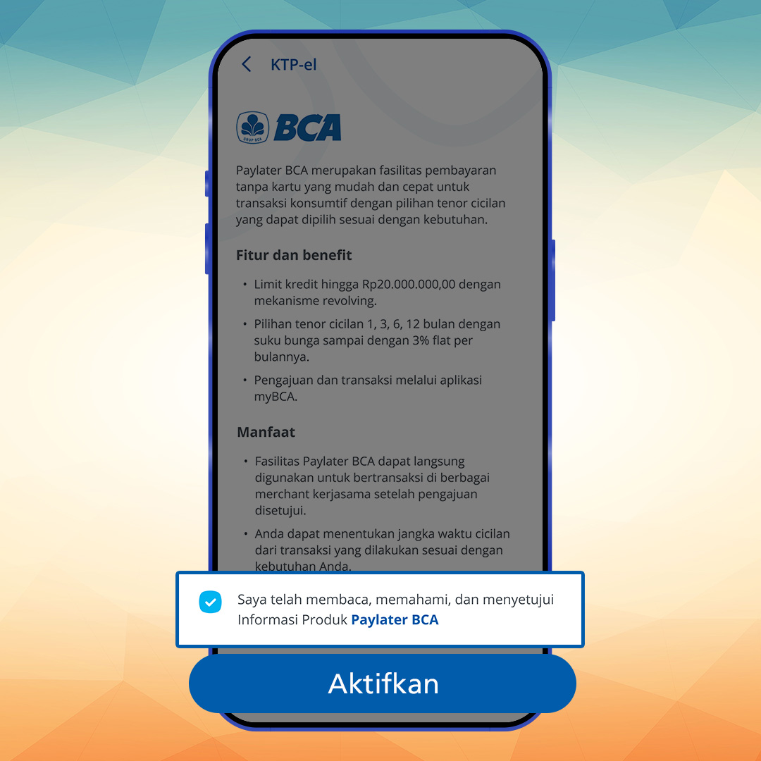 Tambahan informasi penting. Sebelum menggunakan Paylater BCA, pastikan dulu kamu sudah memiliki BCA ID agar bisa mengakses dan menikmati semua layanan di myBCA termasuk Paylater BCA. Cara membuat BCA ID mudah, kok, kamu bisa membacanya di sini.