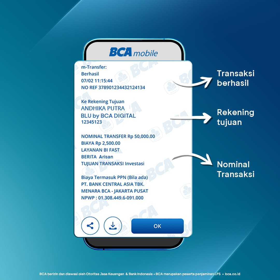Berikut ini cara save dan share bukti transaksi di BCA mobile: