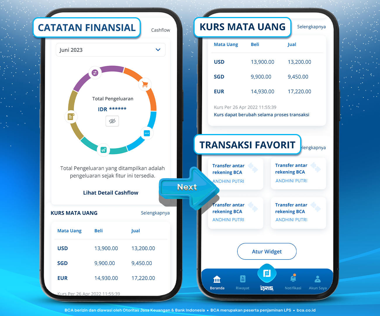 BCA juga mempunyai fitur Widget dalam myBCA, yang terletak di bagian bawah layar home page saat memasuki aplikasi myBCA. Ada 3 Fungsi pengaturan Widget. Coba disimak ya!