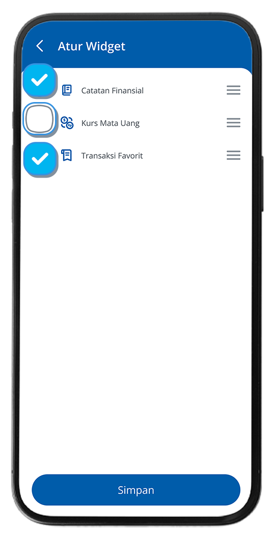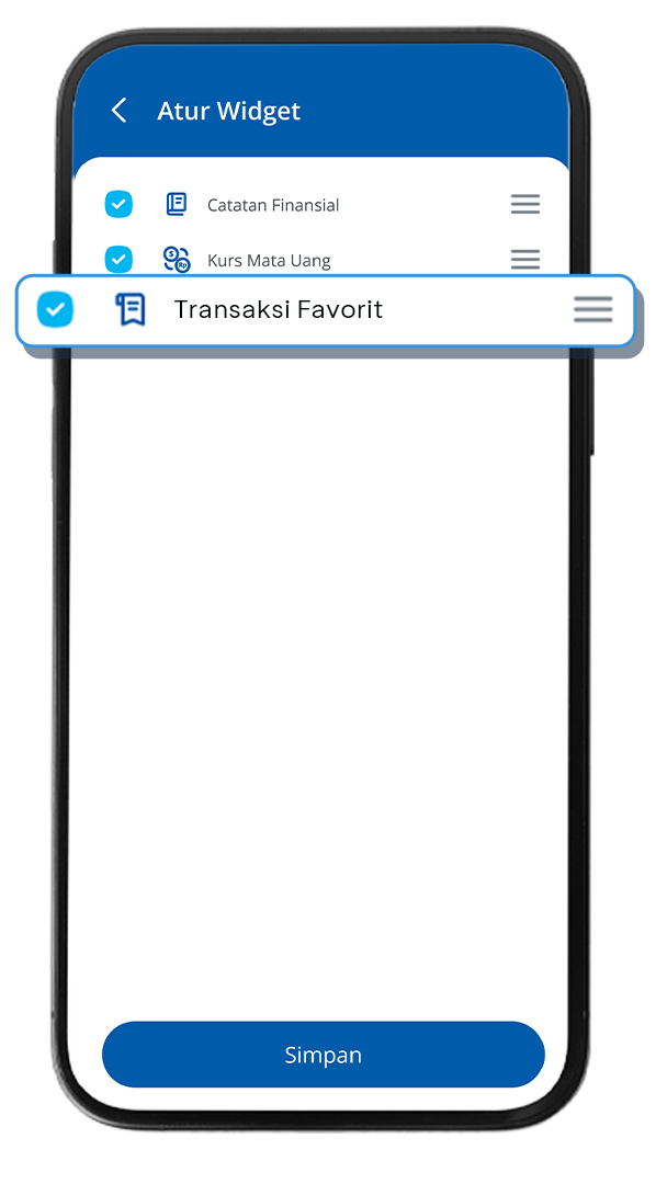 Dengan memanfaatkan fitur Atur Widget dalam myBCA, maka akan memudahkan kamu untuk dapat beraktivitas keuangan dengan lebih cepat dan efektif.