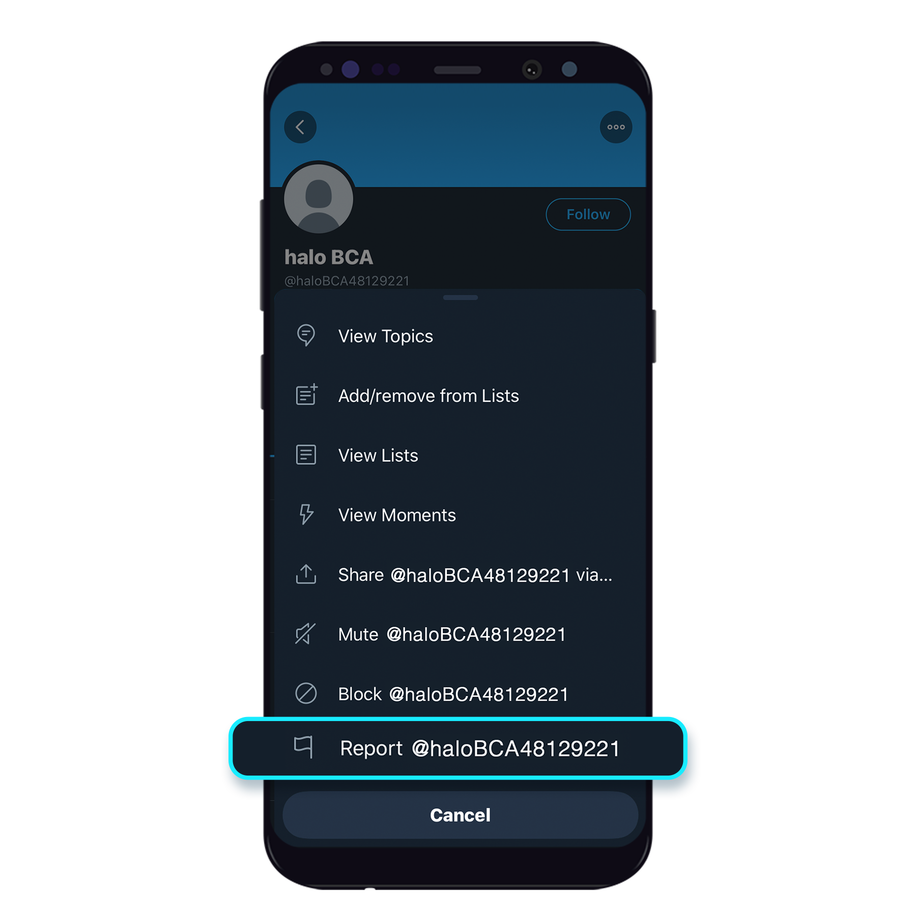 Geser layar ke paling bawah dan tekan “Report Contact”
