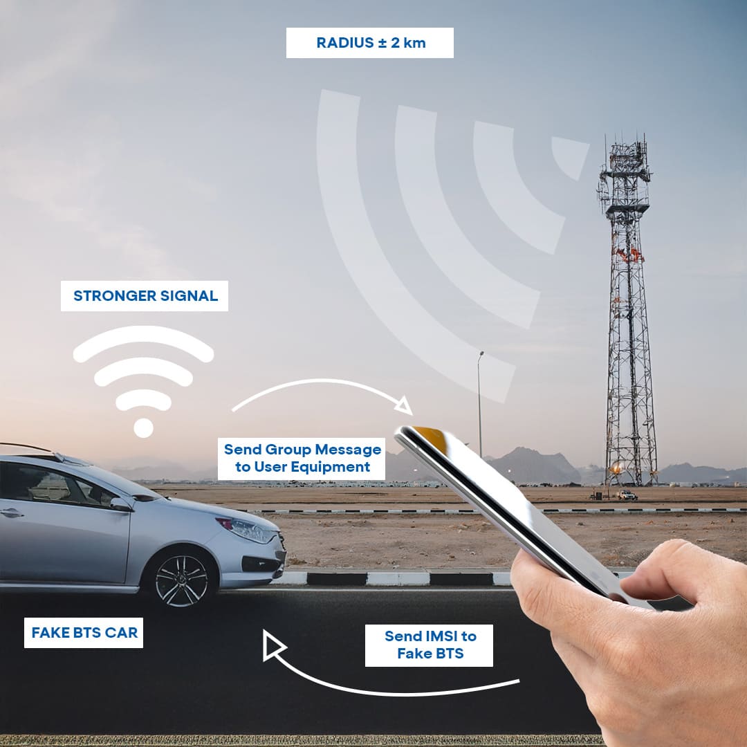 - Mobil milik fraudster melakukan metode fake BTS (seperti gambar di atas)