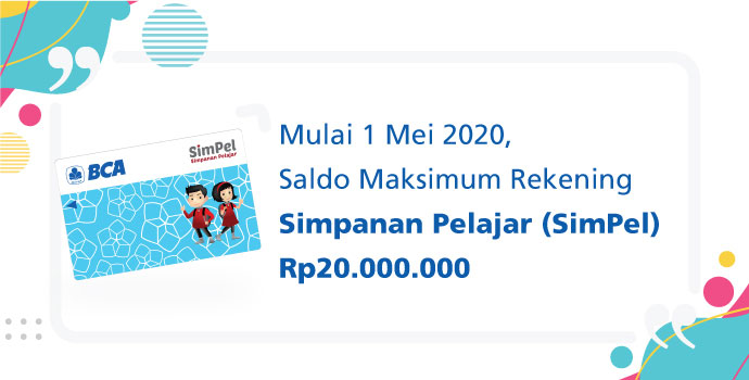 Saat ini Simpanan Pelajar (SimPel) dari BCA kini sudah bisa menabung sampai Rp20,000,000 mulai 1 Mei 2020. Jadi anak-anak kamu bisa memiliki tabungan lebih banyak dan belajar mengelola keuangan sejak dini.