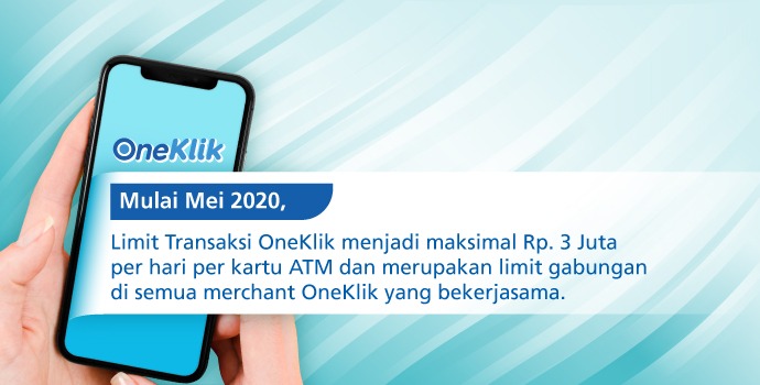 - Semula limit harian OneKlik dapat ditentukan oleh nasabah hingga maksimal Rp. 1 juta/akun/merchant OneKlik akan menjadi Rp. 3 juta/kartu ATM/hari.