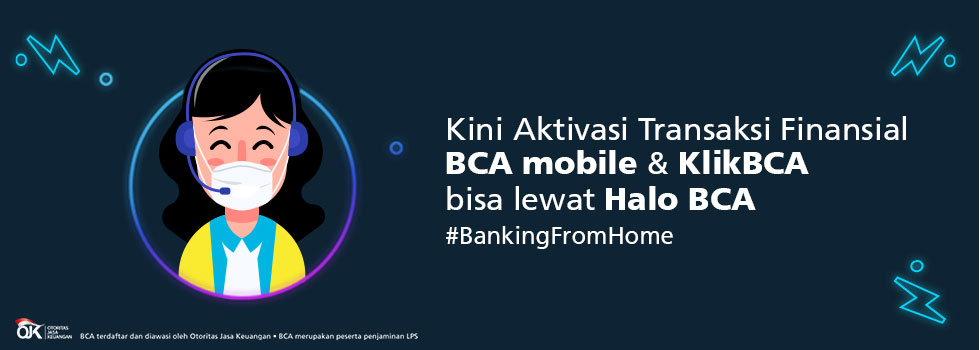 Aktivasi transaksi finansial untuk BCA mobile dan KlikBCA lewat Halo BCA. Jadi kamu yang bekerja dari rumah bisa tetap produktif melakukan transaksi finansial via BCA mobile dan KlikBCA. Semua mudah dilakukan dari rumah, transaksi pun aman dengan #BankingFromHome dari bank BCA.
