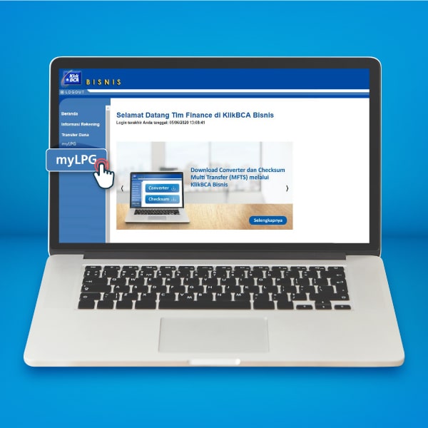 Untuk mengakses fitur MyLPG, masuk ke KlikBCA Bisnis Anda kemudian klik menu MyLPG.