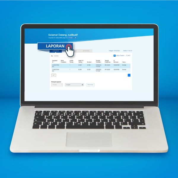 - Klik menu “Laporan”, data yang akan muncul merupakan data realtime transaksi dari