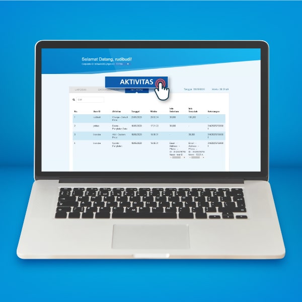 - AKTIVITAS, untuk monitoring setiap aktivitas yang pernah dilakukan pada