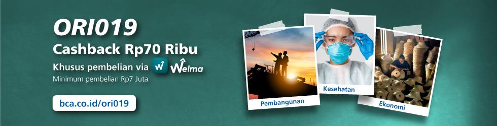 Tunggu apa lagi? Yuk, ikut berkontribusi memulihkan ekonomi dengan investasi ORI019 di Welma dan dapatkan cashbacknya! Informasi lebih lanjut, kunjungi bca.co.id/ori019 atau hubungi Halo BCA (1500 888).