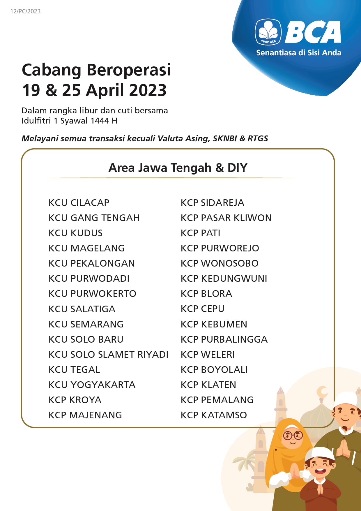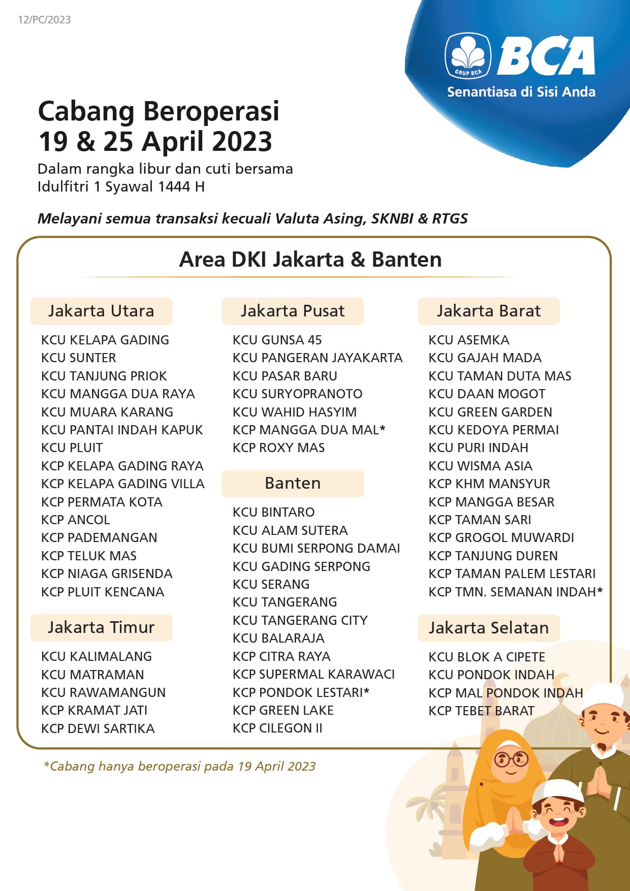 Berikut daftar cabang BCA yang bisa dikunjungi pada 19 dan 25 April 2023