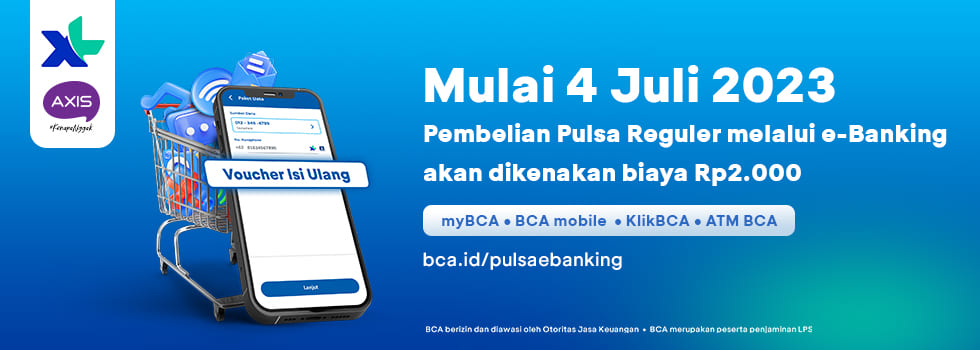 Dalam upaya meningkatkan kualitas layanan dan kenyamanan transaksi, mulai 4 Juli 2023 pengisian pulsa reguler XL dengan menggunakan berbagai e-banking BCA, seperti dari KlikBCA, ATM BCA, myBCA dan BCA mobile, dan juga layanan BCA by phone akan ada perubahan biaya Admin dari Rp1.500 menjadi Rp2.000 per transaksi.