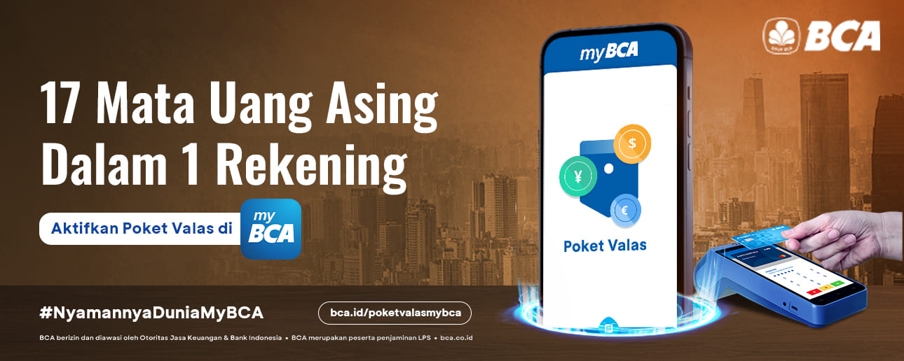Informasi lebih lanjut mengenai Poket Valas, silakan baca Info Produk Poket Valas atau hubungi layanan Halo BCA 1500 888 dan aplikasi haloBCA.