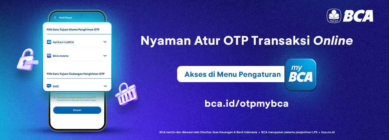 Mulai 16 Juli 2025, BCA akan menghadirkan fitur terbaru yang memungkinkan kamu mengatur sendiri tujuan pengiriman kode OTP (one time password) ketika bertransaksi online menggunakan Kartu Debit BCA dan Kartu Kredit BCA. Pengaturan dapat dilakukan melalui myBCA versi aplikasi atau pun website, BCA mobile, dan aplikasi haloBCA.