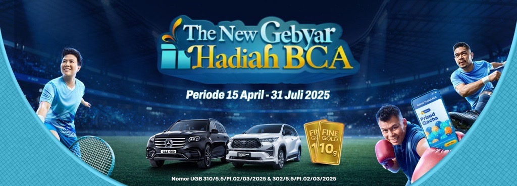 Nantikan Gebyar Hadiah BCA selanjutnya di bulan Oktober 2025. Untuk informasi selengkapnya akan diinformasikan kembali melalui website dan media channel resmi BCA lainnya.