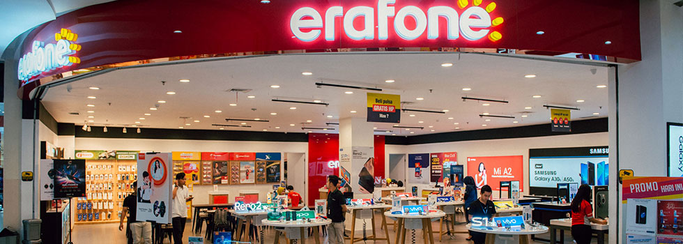 - Erafone Botani Square, Paragon City Mall, AEON Mall Sentul City, Gejayan Jogja, Mal Taman Anggrek, Pacific Place Mall, Pantai Indah Kapuk Mall, Summarecon Mal Bekasi, Senayan Park Mall