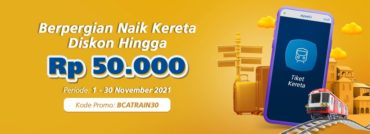 - Diskon 10% hingga maksimum Rp 50.000,- dengan Kode Promo :BCATRAIN30