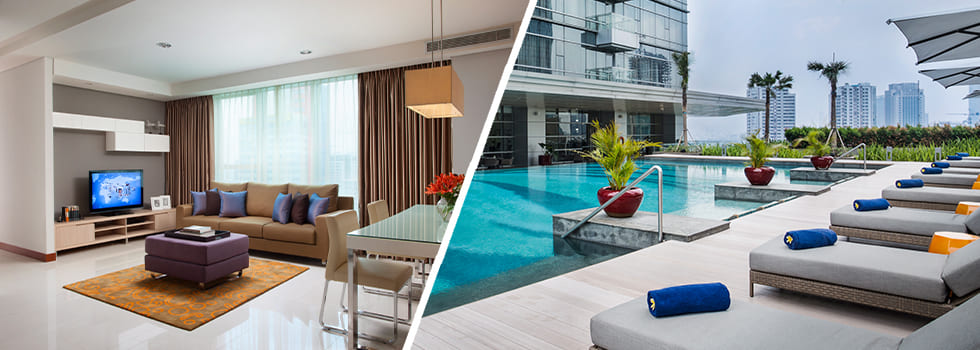 Studio Executive, 1Bedroom Deluxe, 1Bedroom Executive, Family Suite |