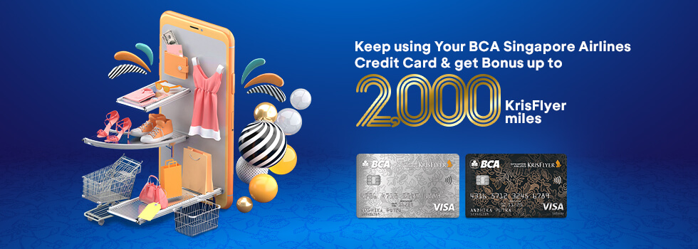 - Bonus hingga 2000 KrisFlyer Miles, untuk minimum akumulasi transaksi per bulan Rp 50jt