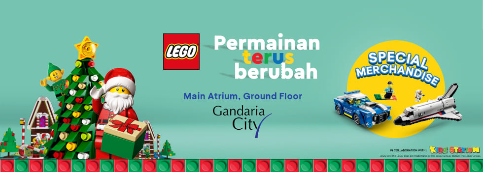 - Dapatkan mainan Lego merchandise + Re.juve 250 ml + RR Chocolate untuk min. transaksi sebesar Rp 1.000.000 di tenant Gandaria City