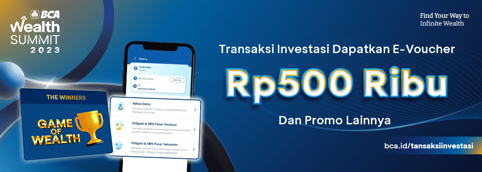 - Pemberian hadiah E-Voucher akan dikirimkan ke email nasabah yang didaftarkan pada website BCA Wealth Summit Online 2023.