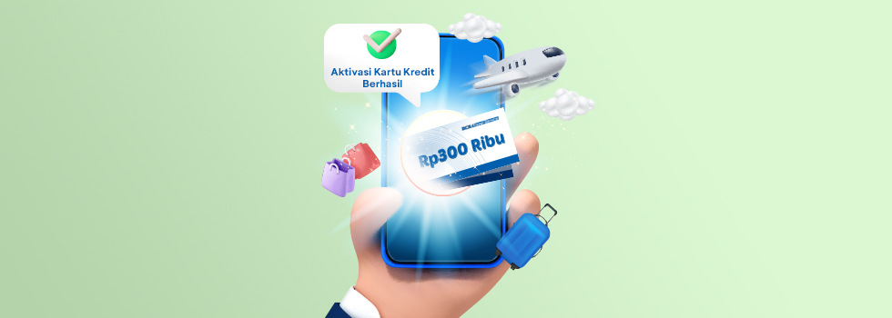 - Aktivasi Kartu Kredit BCA dan transaksi menggunakan Kartu Kredit akan mendapatkan voucher BCA Travel Service Rp300 ribu