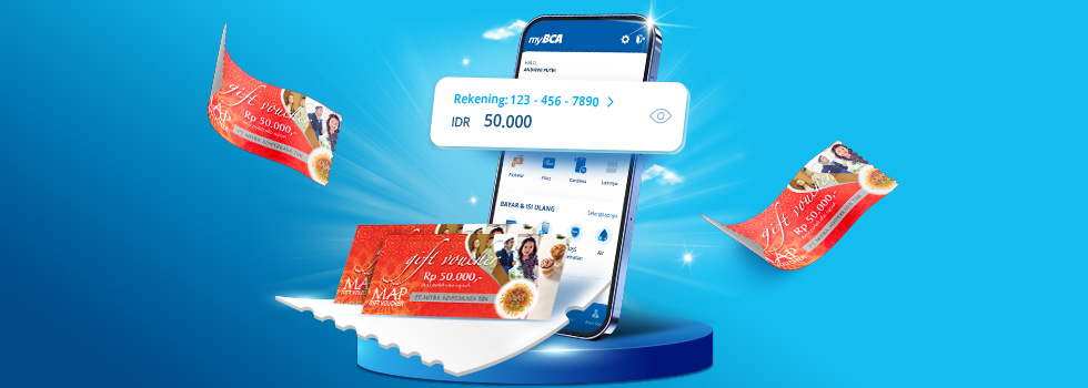 - Isi saldo rekening minimum Rp50.000 selama periode promo, dapatkan Voucher MAP Rp50.000