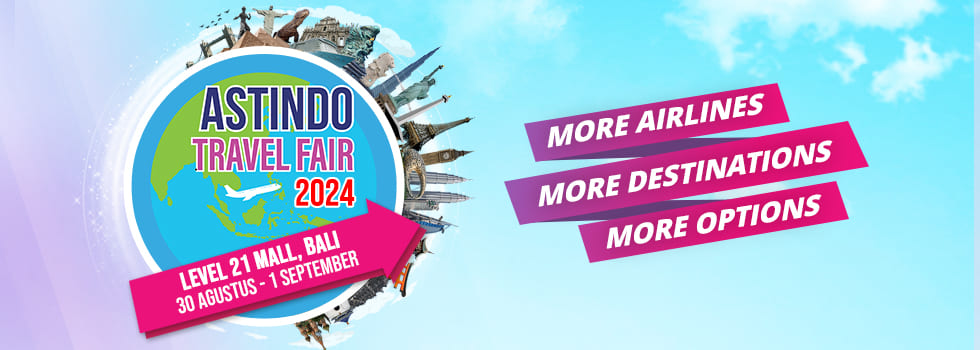 - Berlaku untuk transaksi di travel agent yang berpartisipasi di Astindo Travel Fair - Level 21 Mall Bali dengan Kartu Kredit BCA (kecuali BCA Smartcash, BCA Visa Corporate, dan BCA Mastercard BWS)