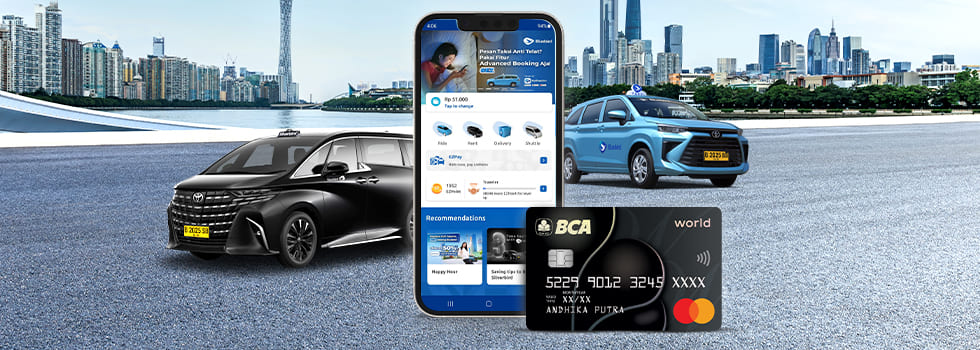 - Hanya berlaku untuk penggunaan pertama kali dengan Kartu Kredit BCA Mastercard World di aplikasi MyBluebird