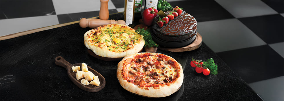 - Berlaku untuk pembelian menu Pizza dan minuman dengan minimum transaki Rp150 ribu (sebelum pajak dan servis)