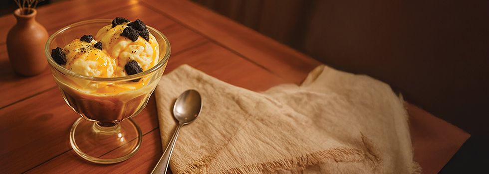 - Espresso Affogato (single scoop Vanilla Ice Cream dengan single shot 100% arabica espresso & brown sugar crumbs)