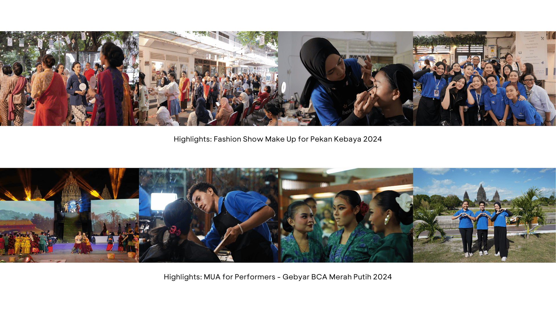 Untuk menjadi MUA Bakti BCA, peserta menjalani serangkaian proses, mulai dari tahap seleksi, pembekalan, praktik, hingga ujian sertifikasi BNSP. Setelah lulus, para MUA Bakti BCA langsung terjun ke dunia profesional dan mendapatkan exposure di berbagai kegiatan BCA.