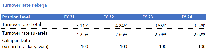 Komitmen kami terhadap pengembangan meluas ke seluruh tenaga kerja, termasuk karyawan kontrak dan paruh waktu. Meskipun program pengembangan karier berjenjang dan persiapan pensiun secara eksklusif ditujukan bagi karyawan tetap, kami memastikan karyawan kontrak, seperti peserta Program Magang Bakti, mendapatkan akses ke berbagai inisiatif pengembangan.